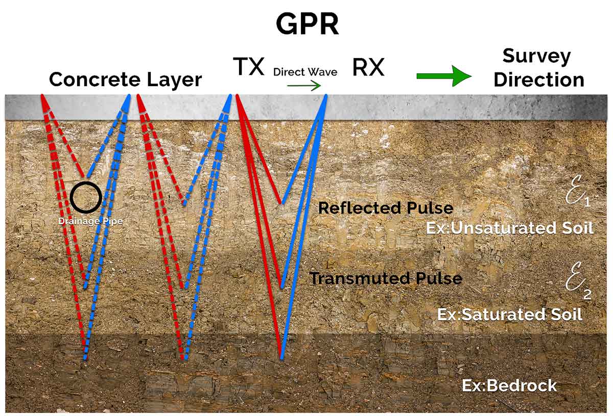 - Transmission: A GPR unit sends a radio frequency pulse into the ground via an antenna.